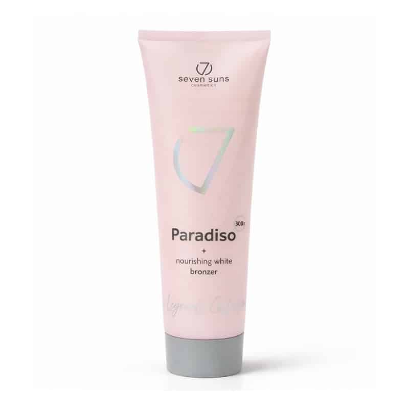 Paradiso är en lyxig ”White Bronzer” skapad för dig som vill ha en djup, intensiv och naturlig solbränna utan risk för fläckar på kläderna. Denna vita lotion absorberas blixtsnabbt och arbetar med hudens egna pigment för att framkalla en semesterfräsch lyster som håller i upp till en vecka. Den rika formulan vårdar huden på djupet och lämnar den silkeslen med en strålande finish.