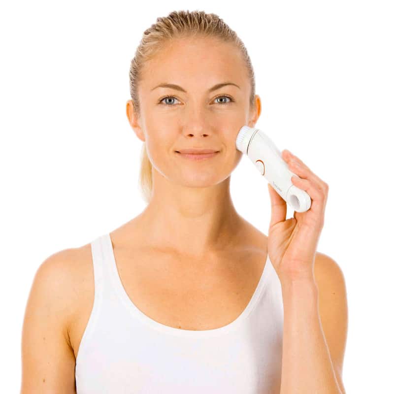 För daglig ansiktsvård och rengöring. Tvåstegs rotation, 1-minuts timer. Vattentålig IPX-7 – för användning i duschen. Belyst ON / OFF-knapp med indikeringslampa. Batteridriven, batterinivåindikator. 2 x 1,5V batteri AAA ingår, Borste ingår.