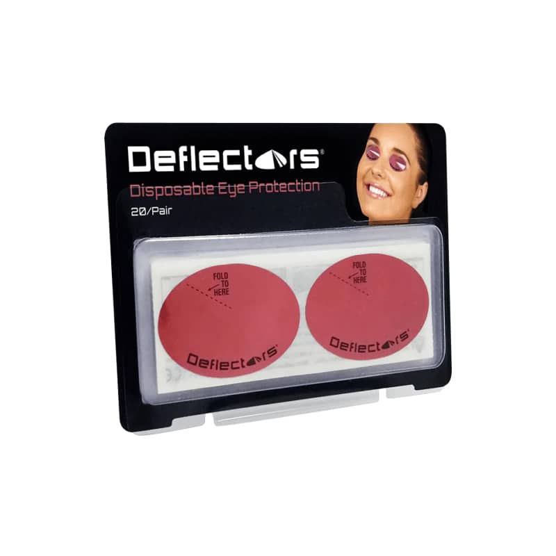 Deflektorer erbjuder engångsskydd för ögonen som utgör ett bekvämt och hygieniskt alternativ till det traditionella ögonskydd som används i solarium. Skyddar mot UVA- och UVB-strålning och är designade för att vara bekväma och lätta, samtidigt som de är enkla att använda. Dessa fungerar även bra med dig som har lite längre ögonfransar.