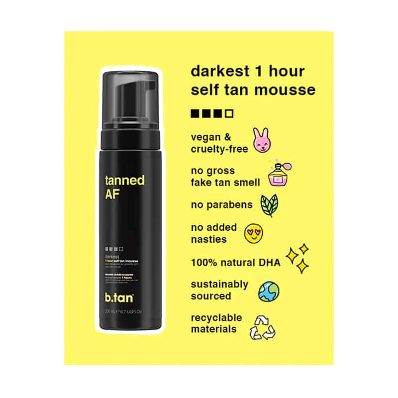 Tanned AF 1 hour Self Tan Mousse darkest – b.tan
