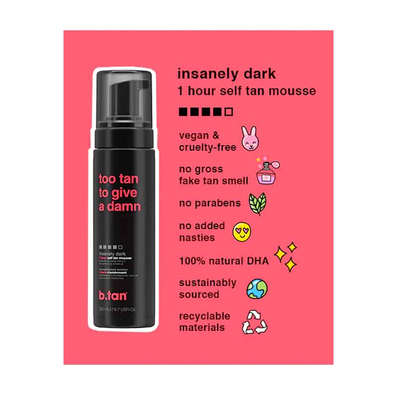 Too tan to give a damn 1 hour Self Tan Mousse insanerly dark – b.tan