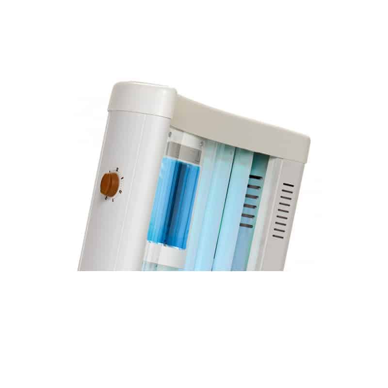 Topaz V-serien, med sin fyra hjulbas och vertikala stativ, är en unik solsäng. Exceptionell komfort: den gasfjäderassisterade höjdjusteringsmekanismen fungerar med en överraskande lätt beröring och är unik bland alla liknande produkter. Oavsett om du föredrar att sola medan du ligger, sitter eller står, anpassar sig Hapro Topaz V-serien till alla situationer. Denna modell finns i olika versioner, med 10 eller 12 lampor. Du kommer säkert att hitta en modell som uppfyller dina personliga behov när du solar hemma.