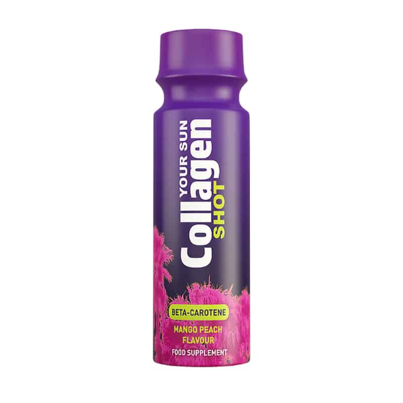 En vitamindryck som ger en ökad effekt och mottaglighet av din tid i solariet eller om du solar utomhus. Sun Shot Collagen fungerar inifrån och innehåller Betakaroten, kollagen och Vitamin D3, som omedelbart förbättrar resultatet, dvs en tydligare och djupare gyllene solbränna. En 100 % framgångsrik solning bör ske i 3 steg: Applicera en solförstärkare, drick en shot, gå och sola.